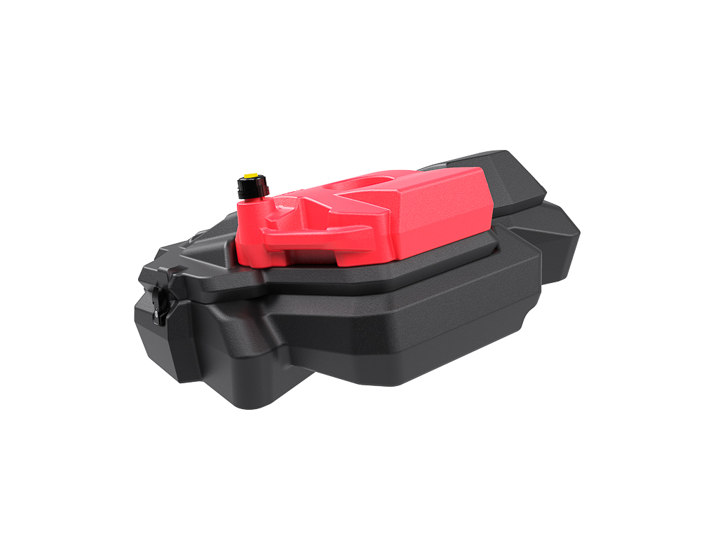 The design features provided that the jerry can is attached with a special attachment GKA Basic on the UTV box, located on the rear platform of the UTV. Mount GKA Basic allows easily, quickly, firmly and conveniently, without the use of tools to fix or remove the jerry can, which has special grooves for such mounts. The silhouette of the UTV box with a jerry can harmoniously complements the design of the UTV.